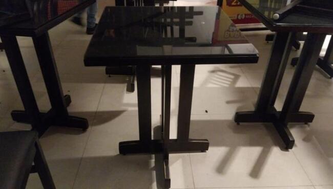 05 (CINCO) SOFÁS COM REVESTIMENTO DE COURO NA COR PRETA, 38 (TRINTA E OITO) CADEIRAS DE MADEIRA NA COR PRETA COM ESTOFADO E 25 (VINTE E CINCO) MESAS NA COR PRETA E COM TAMPO DE VIDRO.