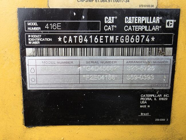 RETROESCAVADEIRA – MARCA: CATERPILLAR – MODELO: 416E – NÚMERO DE INDENTIFICAÇÃO: CAT0416ETMFG06074