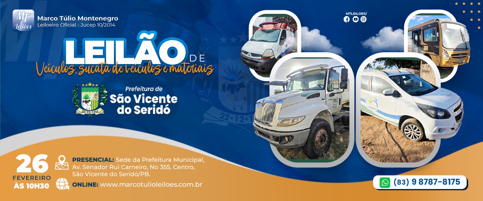 LEILÃO DA PREFEITURA MUNICIPAL DE CURRAL VELHO/PB - VEÍCULOS