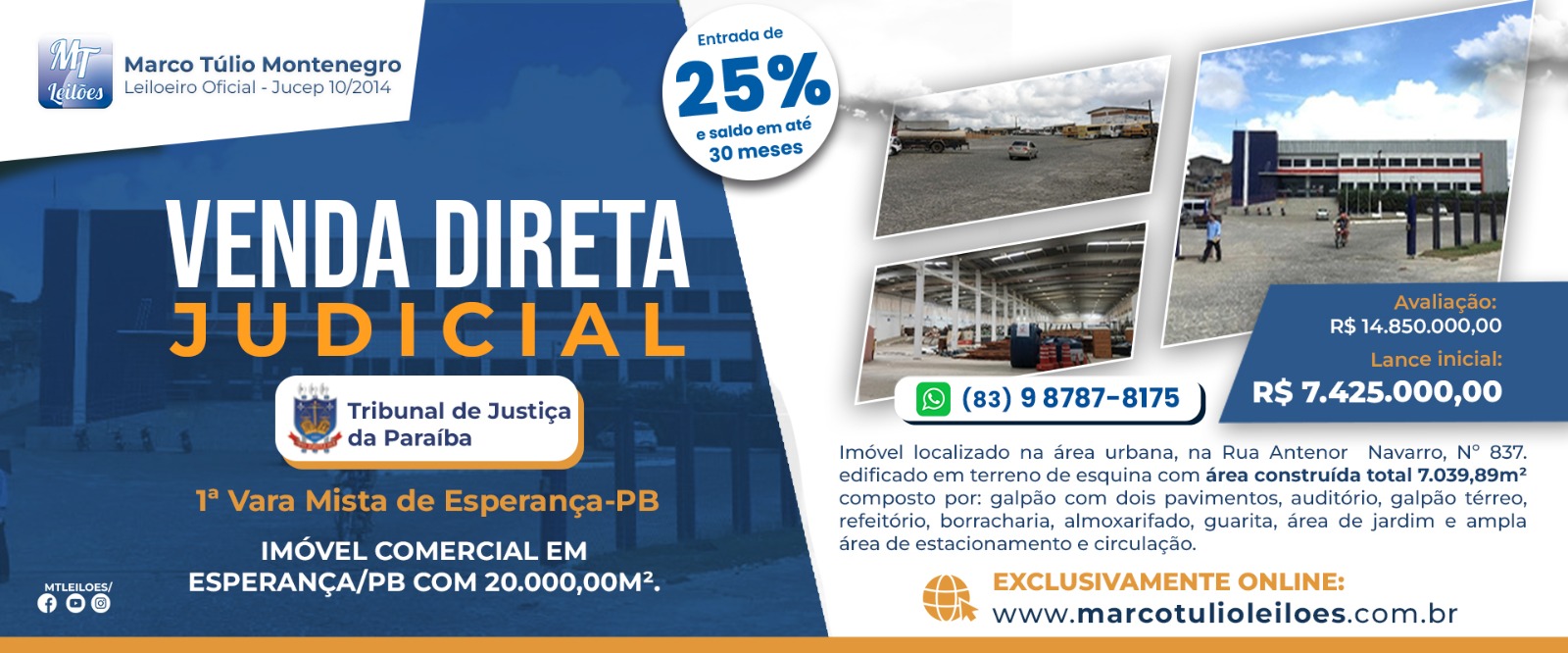 LEILÃO JUDICIAL DA 8ª VARA FEDERAL DE SOUSA/PB - 07 (SETE) LOTES DE TERRENO LOTEAMENTO LAGOA DOS PATOS II EM SOUSA/PB